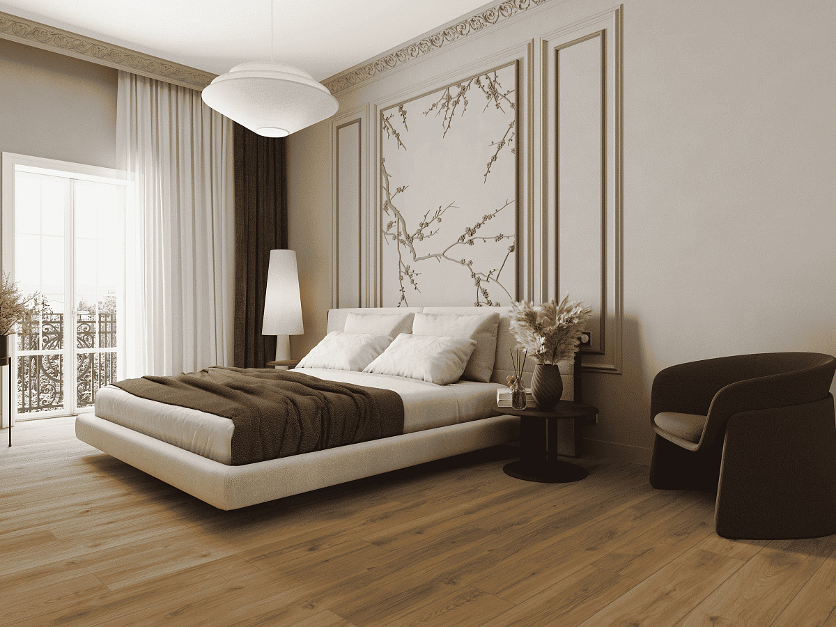 Ламинат Eversense Classic EL1038 Дуб Вирдиа натуральный производится в России на современном оборудовании и точно соответствует всем необходимым требованиям качества, предъявляемым к ламинированным полам 34-го класса и со сроком службы в жилых помещениях до 30-ти лет. Кроме высокого качества, устойчивости к воздействию ультрафиолетовых лучей (отсутствует изменение цвета) и экологической чистоты, ламинат Eversense отличает повышенная устойчивость к воздействию влаги (до 72-х часов), увеличенная прочность замкового соединения (2,5 кН/м.) и ультра-матовая поверхность, имитирующая покрытую маслом древесину.