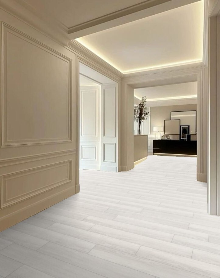Виниловая плитка Bonkeel Rockstar размером 914*152*3 мм. может быть уложена венгерской елочкой, ромбами и палубой в несколько цветов. Сочетается с декорами из коллекции Tarkett Lounge.