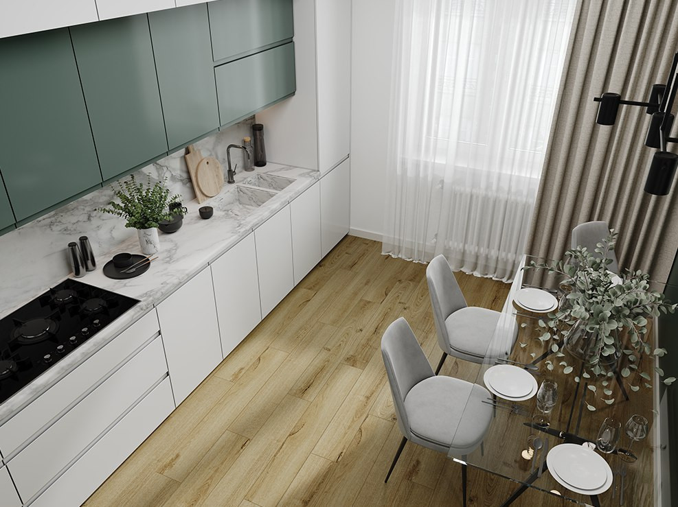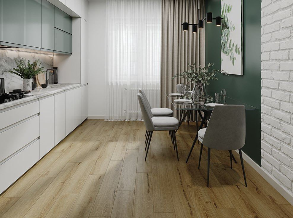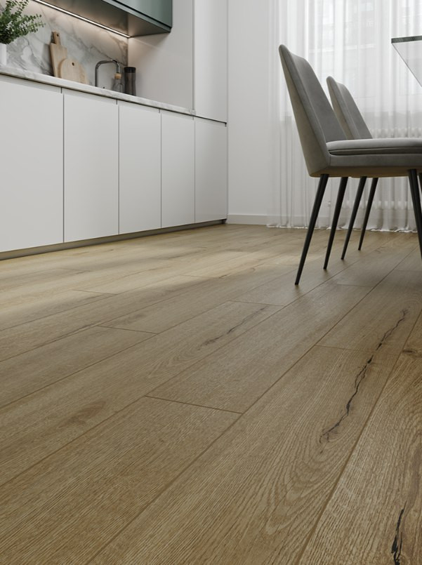 Бренд Cronafloor (производитель Кронапласт) предлагает интересные решения для интерьеров с новой коллекцией Radical Chic. Основное отличие - это наличие встроенной подложки, что позволяет быстро осуществить монтаж и, кроме этого, улучшить шумопоглощение. Ширина доски spc ламината (180 мм.) приближена к паркетной, что особенно актуально для комнат неправильной формы. Классические доски могут добавить ощущение движения и воздуха в интерьер, что создает стильное пространство.