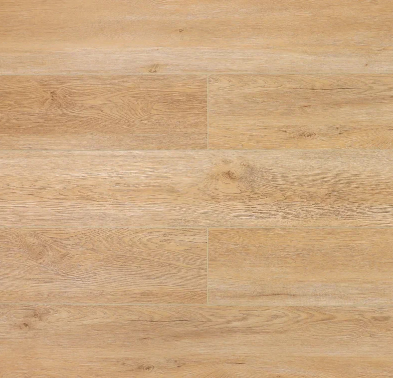 Ламинат SPC с поверхностью приятного натурального оттенка в бежево-песочной гамме, полностью влагостойкий и пригодный для использования с системами теплый пол с температурой до 42 гр.Ц